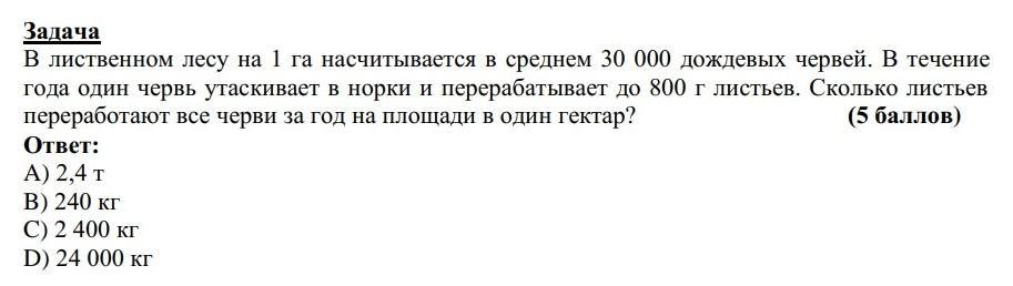 переработают все черви за год на площади в один гектар? (5 баллов)