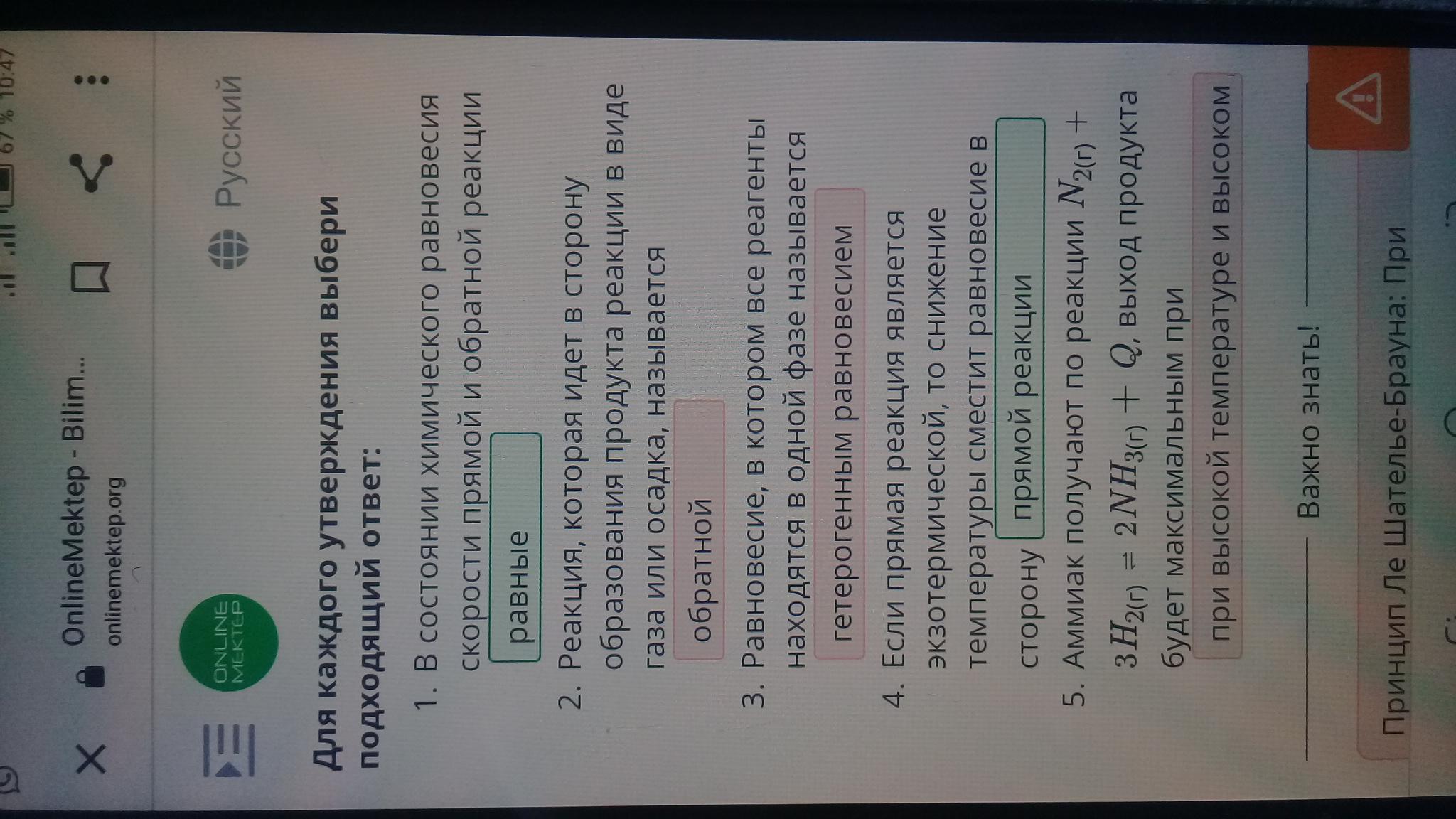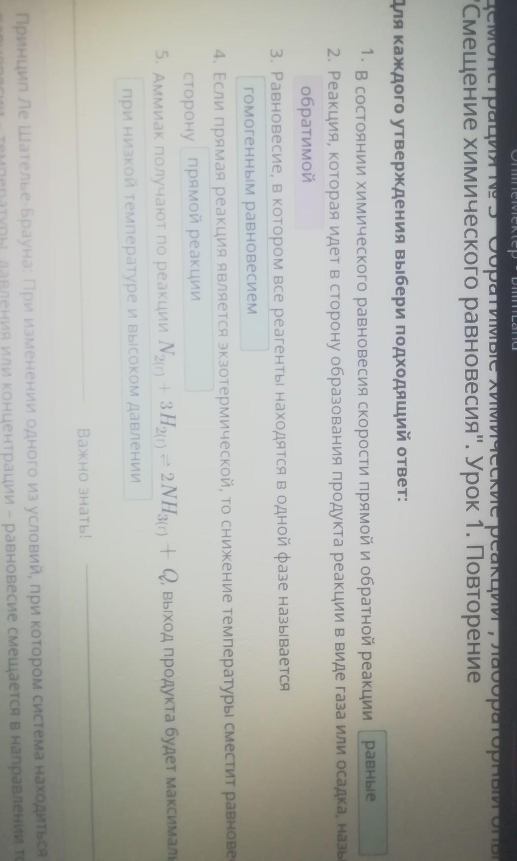 В состоянии химического равновесия скорости прямой и обратной реакции