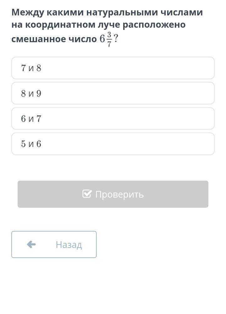 Между какими натуральными числами на координатном луче расположено смешанное число