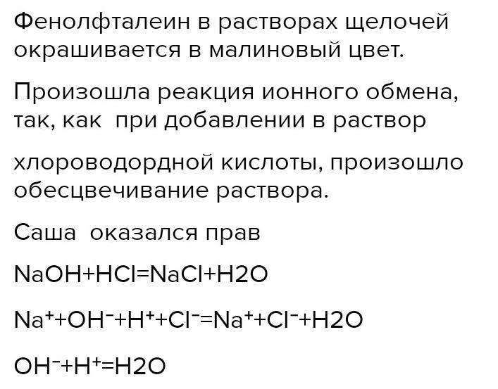 Саша с ним не согласился и решил повторить опыт, но вначале добавить фенолфталеин.