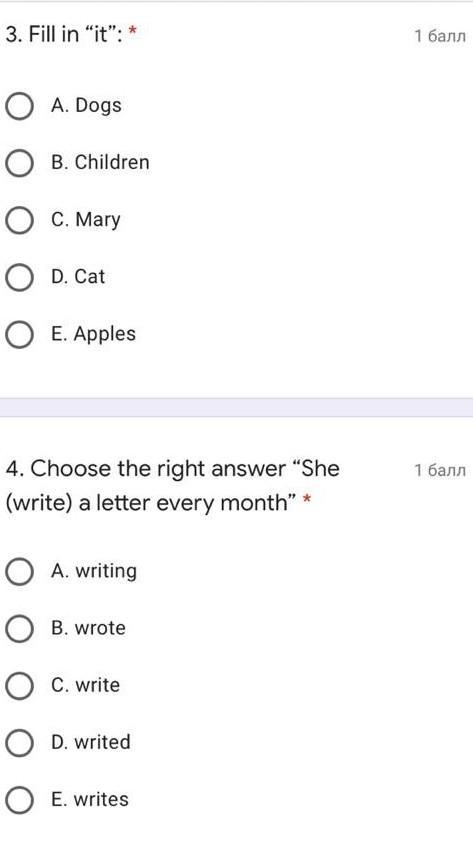 В 4 воде write т.к. это Present Simple,а в 3 может apples,ну там не логично , предложение идёт типо «Заполнить это»
