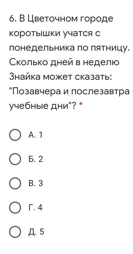 В Цветочном городе коротышки учатся с понедельника по пятницу. Сколько дней в неделю Знайка может сказать: "Позавчера и послезавтра - учебные дни"? *