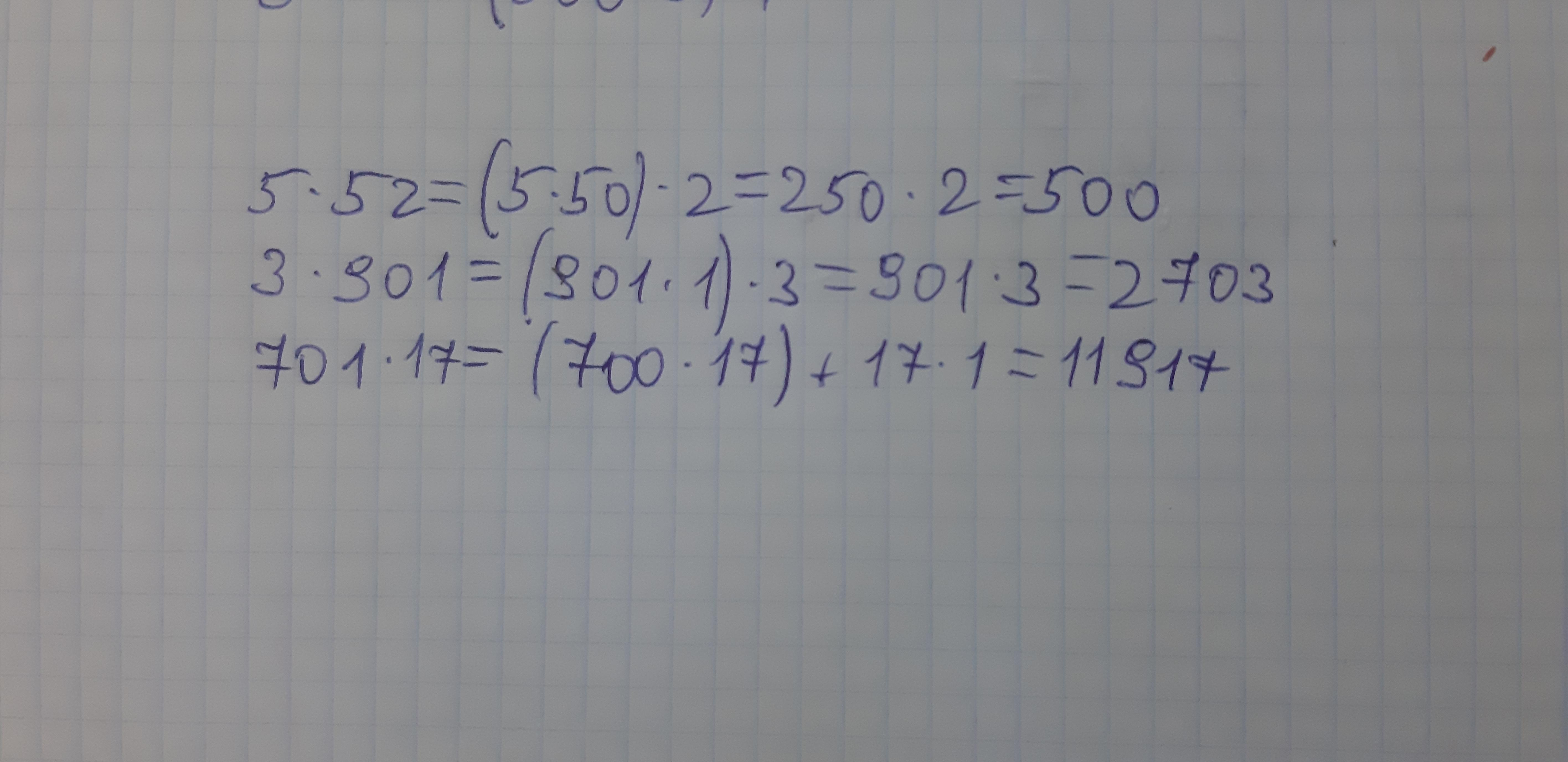 используя распределительное Свойства умножения,вычислите произведение удобным способом 5×52,3×901,701×17