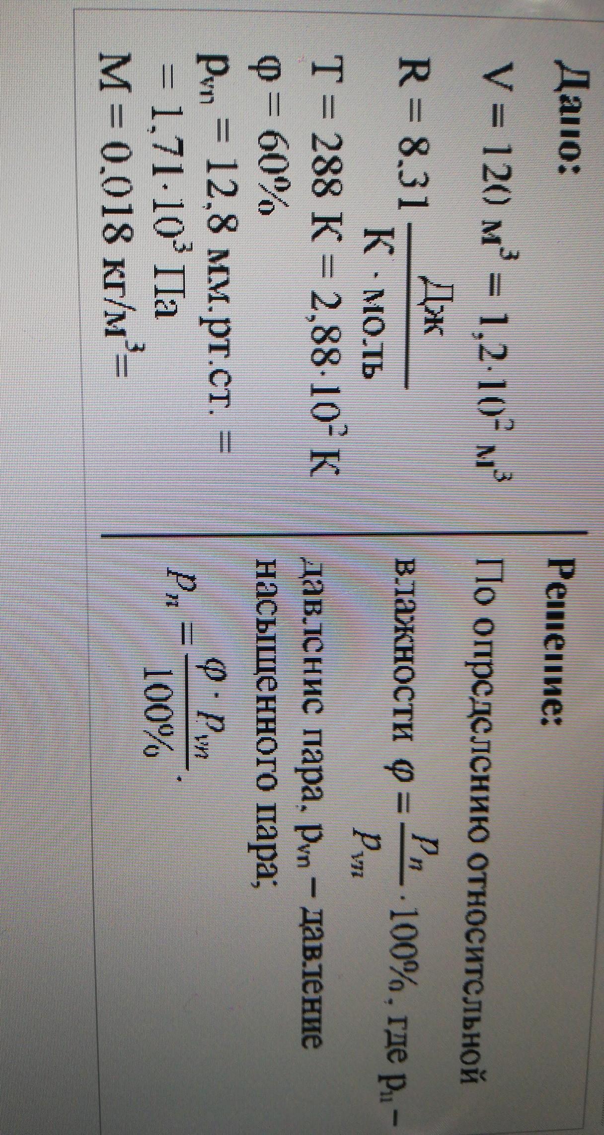 В комнате объемом V = 120 м3 при температуре t = 15 °С относительная