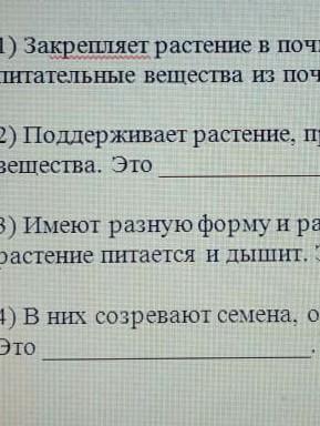 поддерживает растение в почве. Поглощает воду и питательные вещества из почвы.Это________