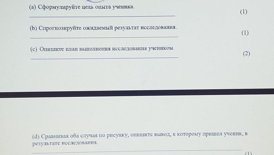 Ответ: a) нужно ли для горения свечи кислород? b) думаю свеча погаснет так как для горения свечи нужен кислород. c) взять спички и зажечь свечу, и закрыть её каким то вакумом,свеча погасла. Итог: для горения свечи нужен кислород.