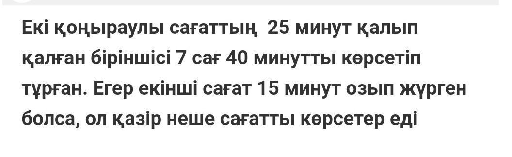 7сағ40мин-25мин=7сағ15мин қазіргі уақыт