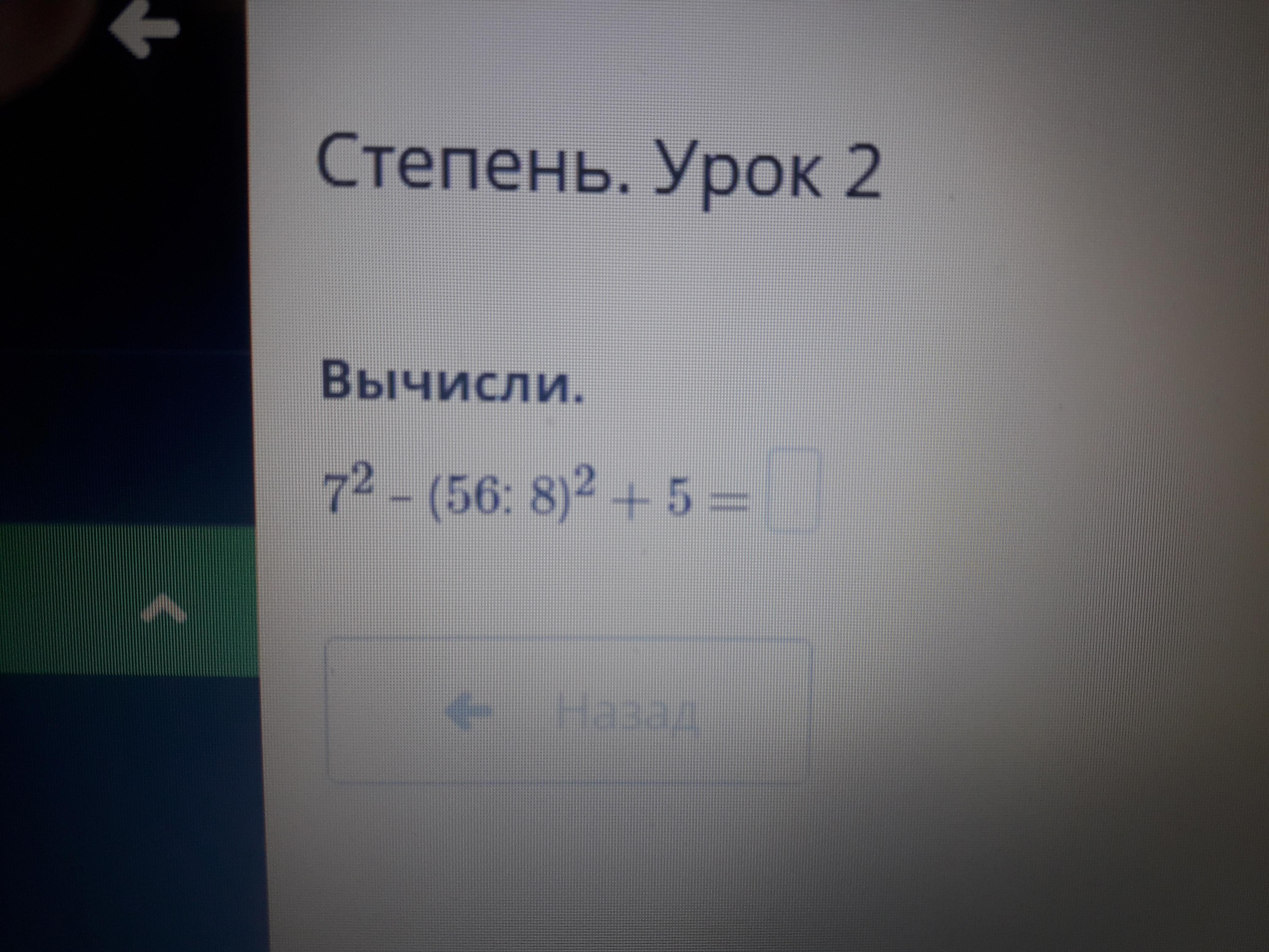 Ответ:7²-(56:8)²+5=49-36+5=13+5=18