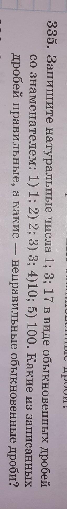335. Запишите натуральные числа 1; 3; 17 в виде обыкновенных дробей