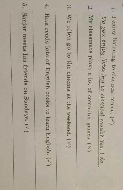 Ответ: 2. Does your classmate play computer games? Yes he does