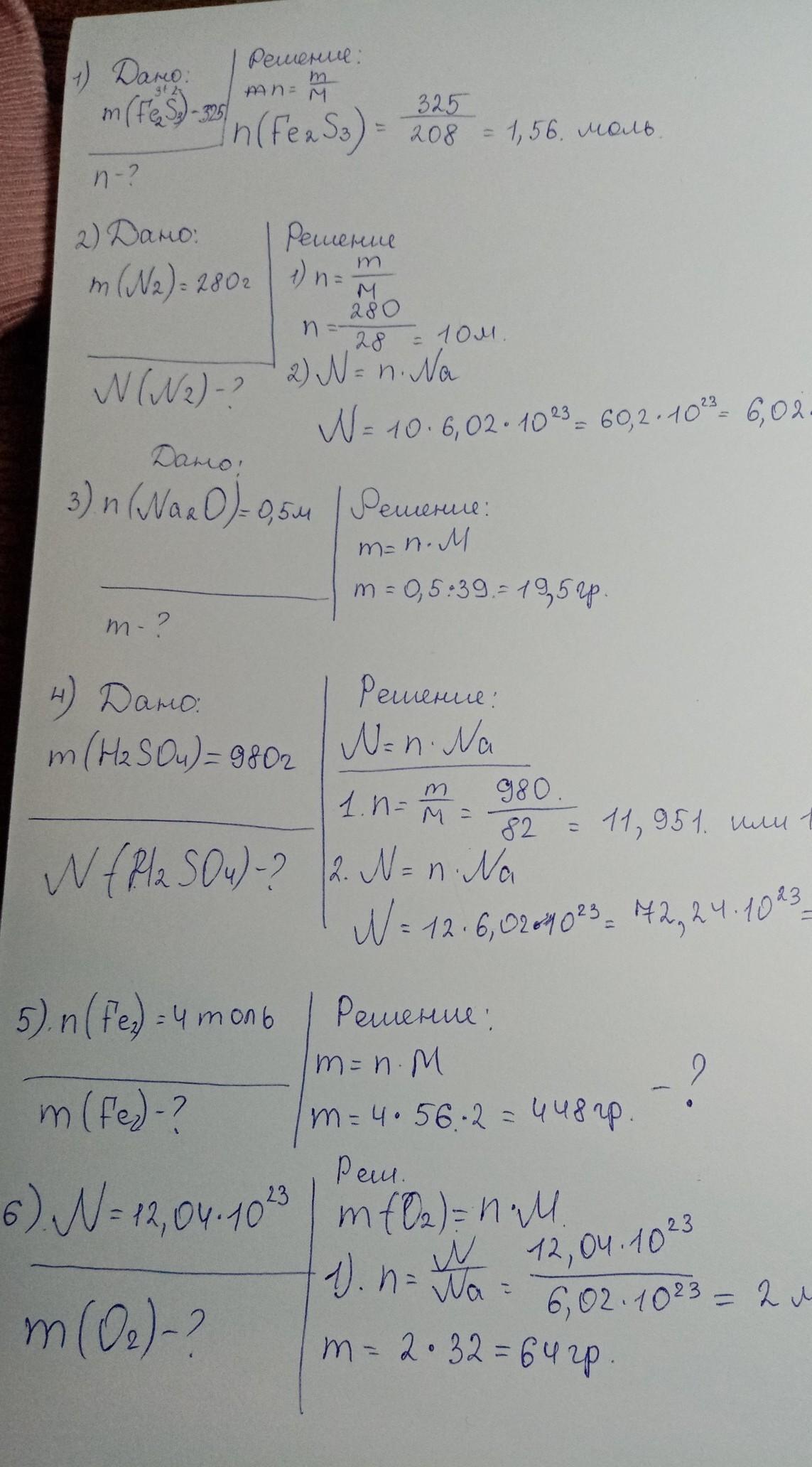 ответьте на вопросы 1. Какое количество вещества содержится в сульфате железа (|||) FeS массой 325 г.