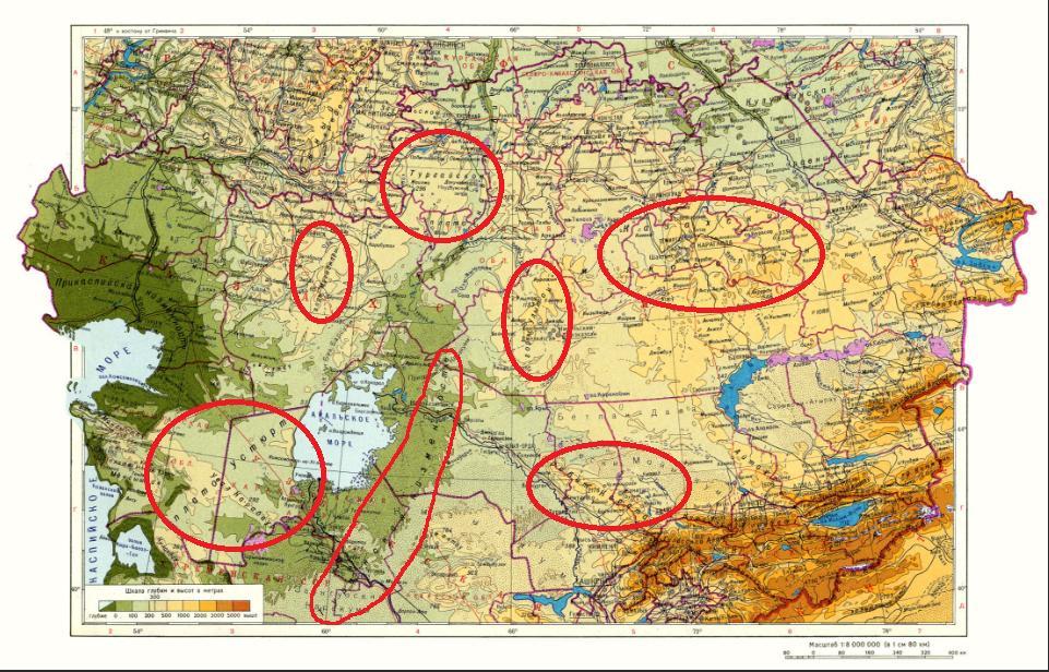 Приведите примеры объектов географической номенклатуры Казахстана и нанесите их на контурную карту (сам с картой сделаю)