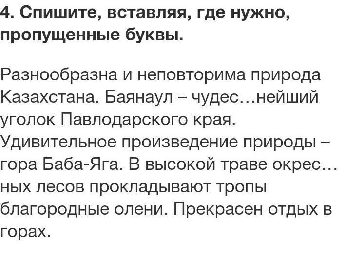 Разнообразна и неповторима природа Казахстана. Баянаул – чудес…нейший уголок Павлодарского края. Удивительное произведение природы – гора Баба-Яга. В высокой траве окрес…ных лесов прокладывают тропы благородные олени. Прекрасен отдых в горах.