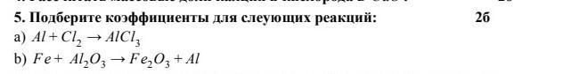 b)2Fe+Al₂O₃→Fe₂O₃+2Al
