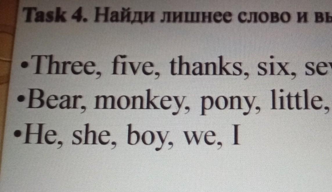 Task 4. Найди лишнее слово и выпиши его