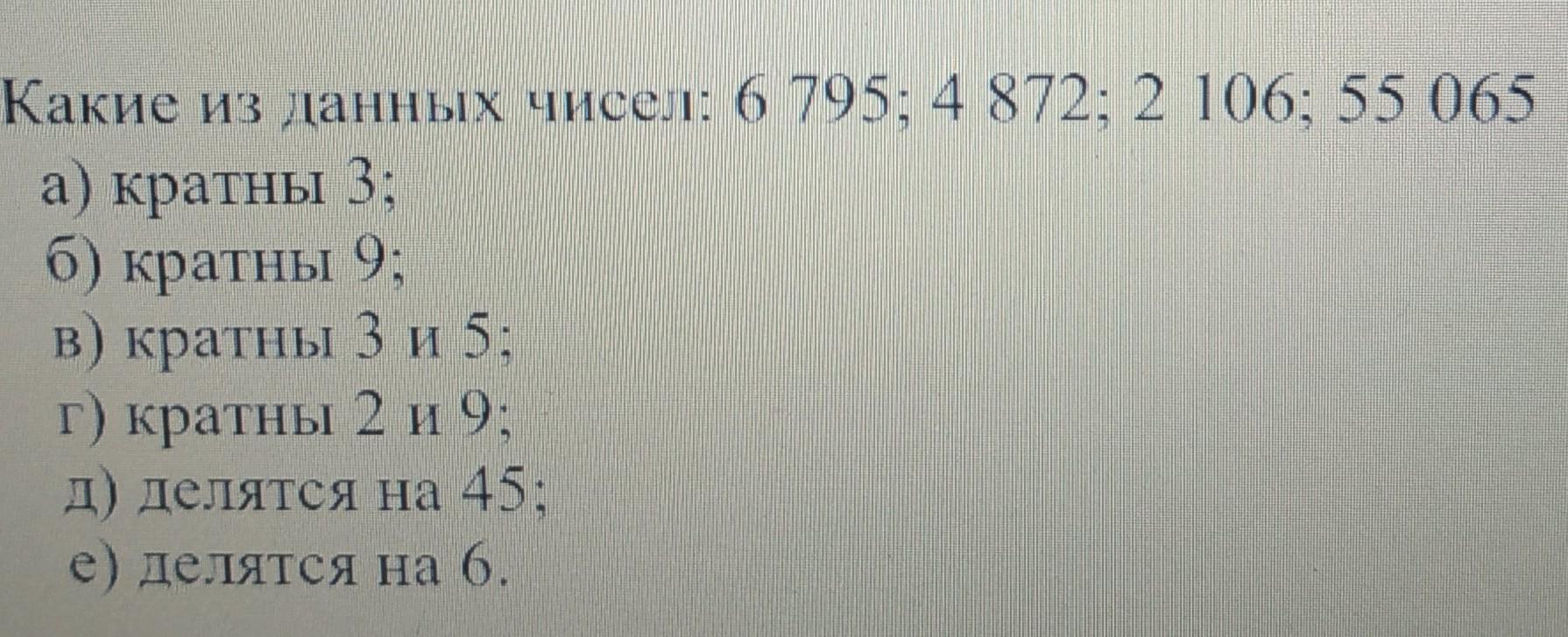 2. Какие из данных чисел: 6795; 4872: 2 106; 55 065