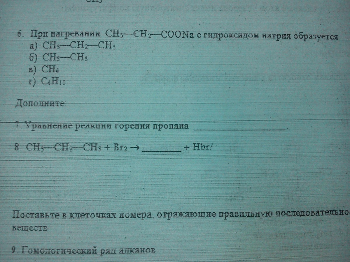 8) CH3-CH2-CH3 +Br2-->CH3-CH2-CH2-Br +HBr