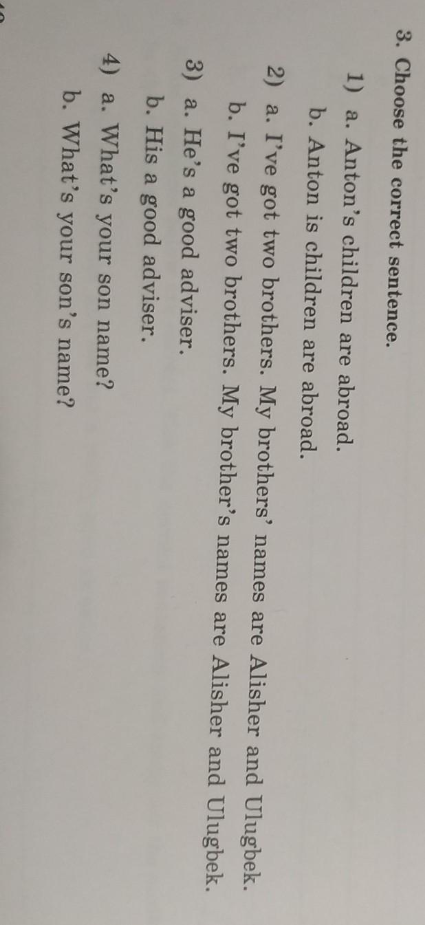 2. A - I've got two brothers. My brothers' names are Alisher and Ulug'bek