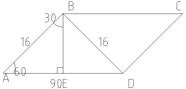Высота BE - образует прямой угол BEA (90). Угол ABE=30 (Сумма углов треугольника = 180). Т.к. AD делит пополам, значит треугольники ABD и BDC - равносторонние (ABD - равные углы).