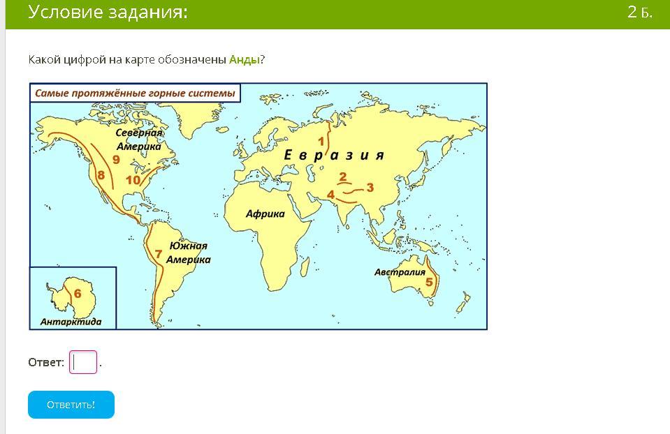 Анды являются горной цепью Южной Америки и находится на её западе