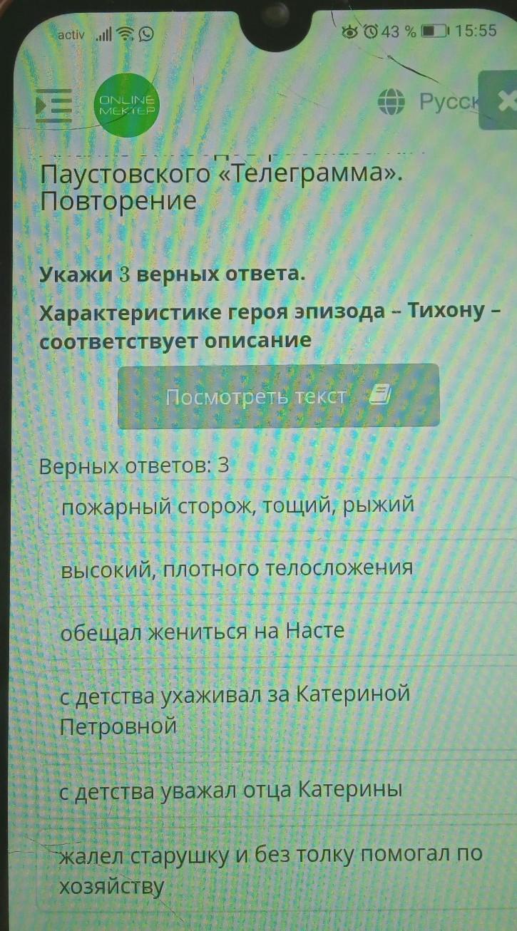 укажи 3 верных ответа. Характеристики героя эпизода-Тихону- соответствует описание