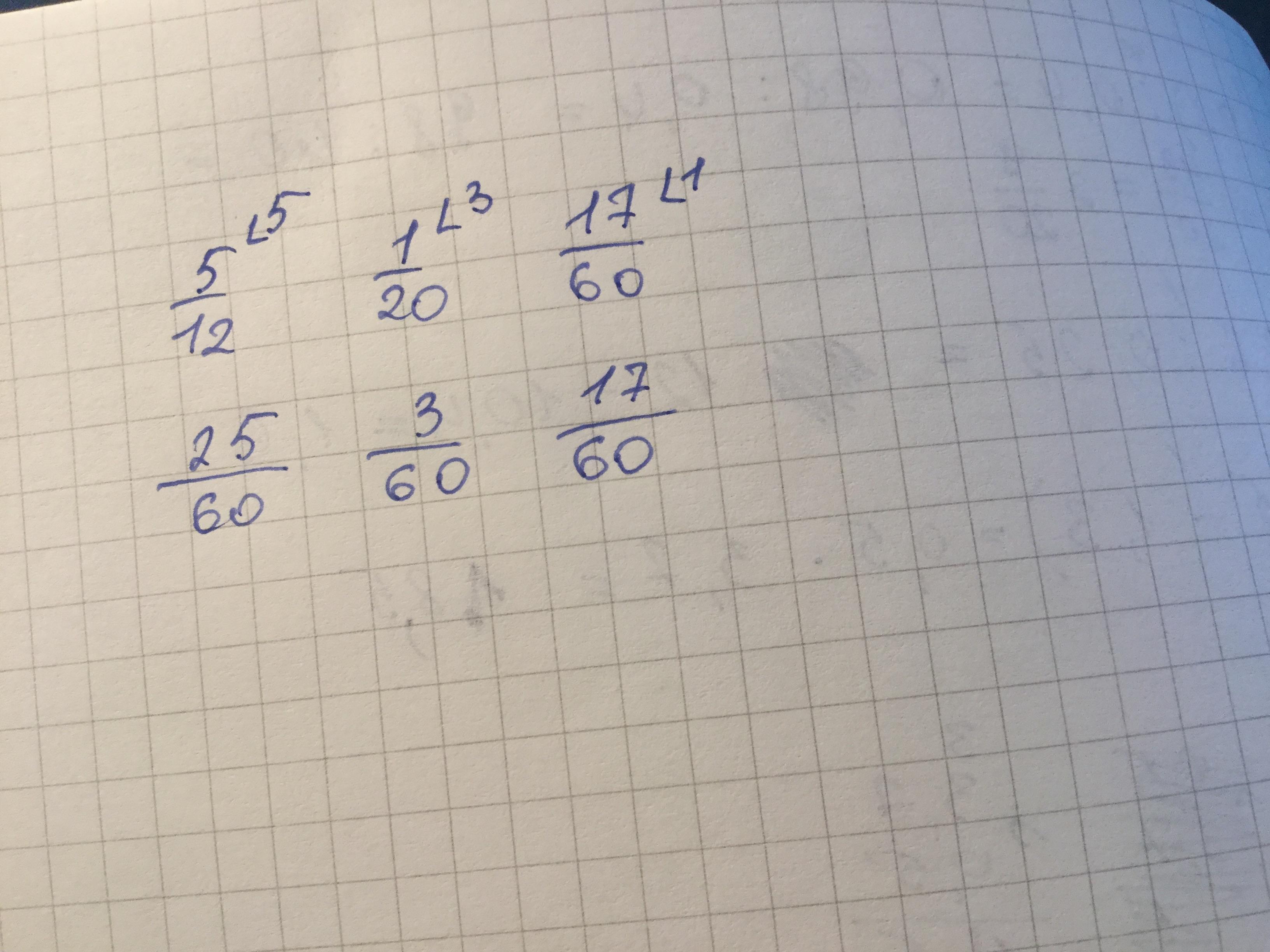 общий знаменатель будет 60, значит 5 умножаем на 5, будет 25. 1 умножаем на 3. будет 3.