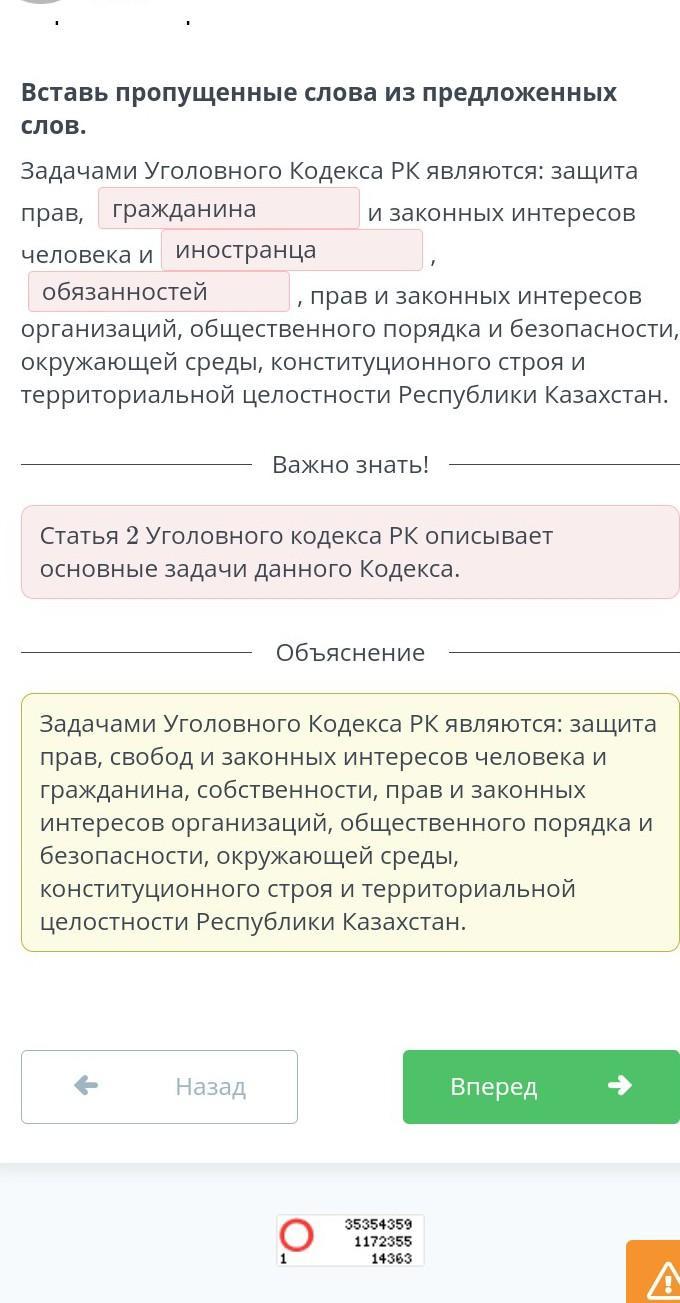 Задачами Уголовного Кодекса РК являются: защита прав,