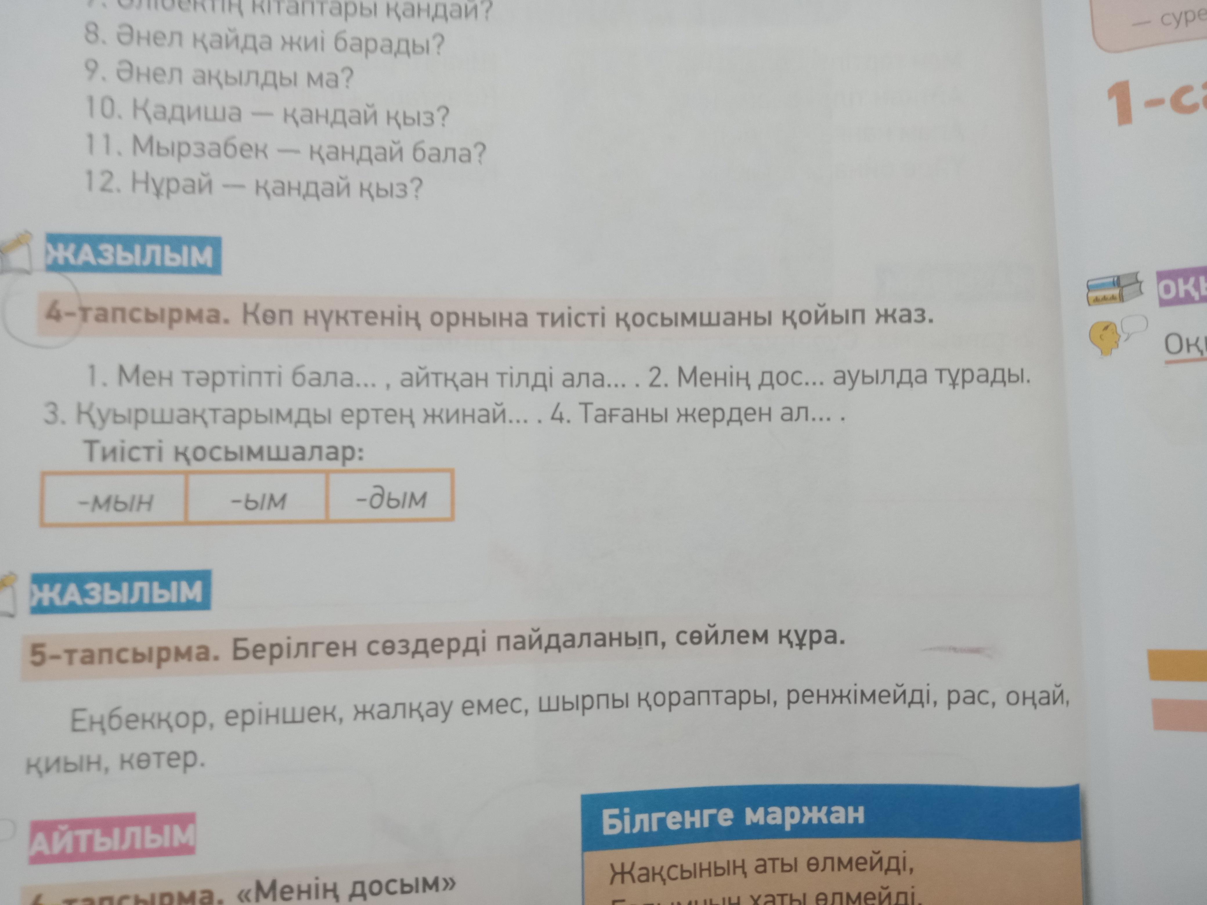 4 тапсырма баламын, аламын, досым, жинаймын, алдым