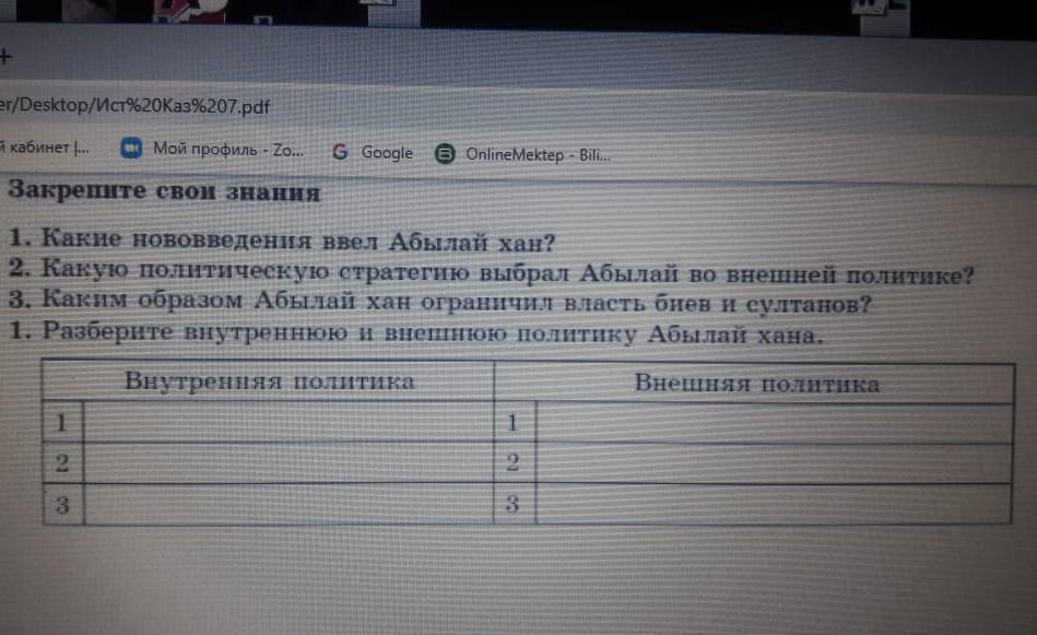 Номер 1 / 1. Какие нововведения ввел Абылай хан? 2. Какую политическую стратегию выбрал Абылай во внешней политике? 3. Каким образом Абылай хан ограничил власть биев и султанов? Номер2/Разберите внутреннюю и внешнюю политику Абылай хана.ПЛИЗ СРОЧНО ПОМОГИТЕ НАПИШЕТЕ ТАК ЧТО Б БЫЛО НЕ МНОГО СРОЧНО ПОЖАЛУЙСТА