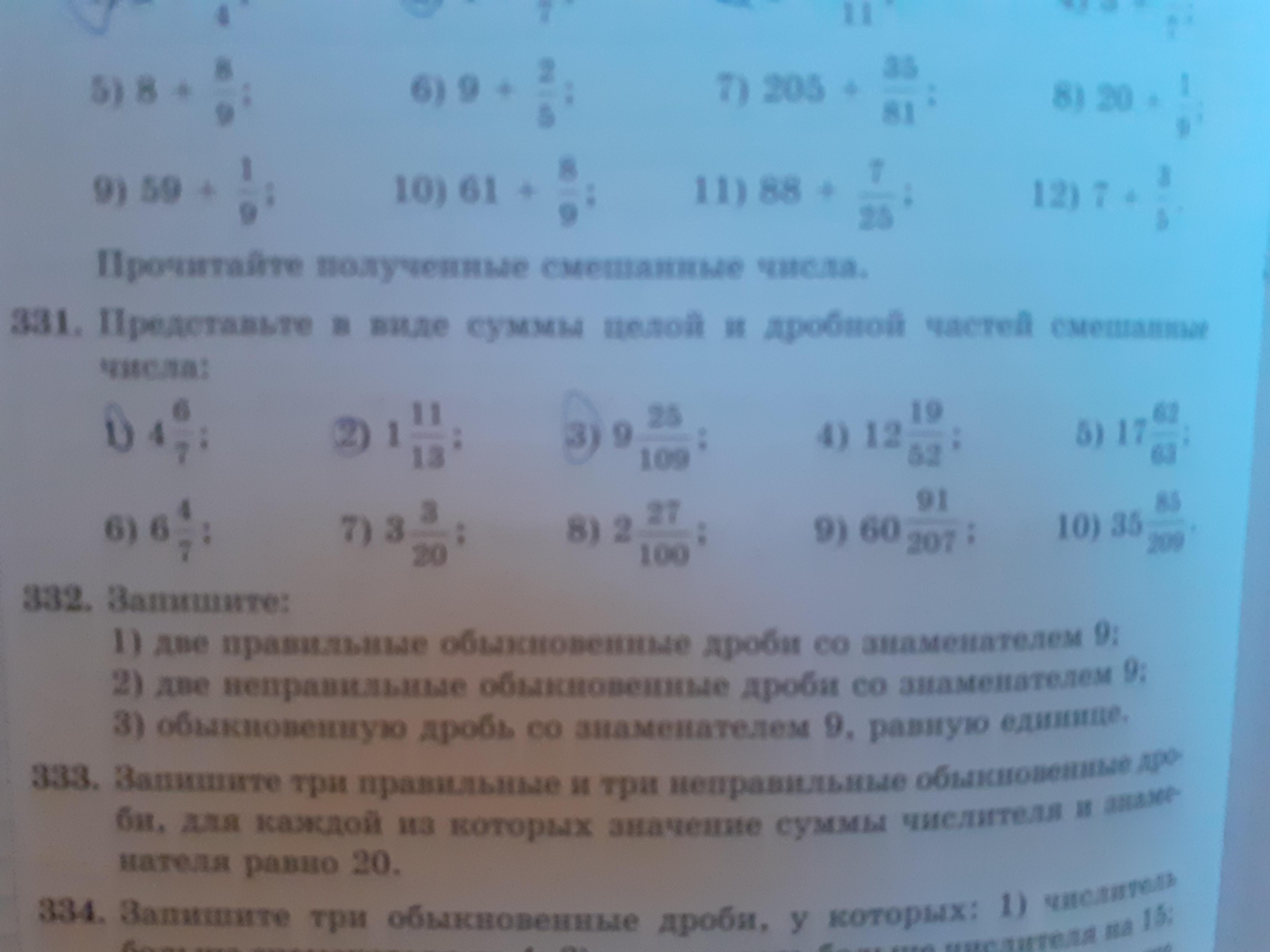 Представьте в виде суммы целой и дробной частей смешанные числа: