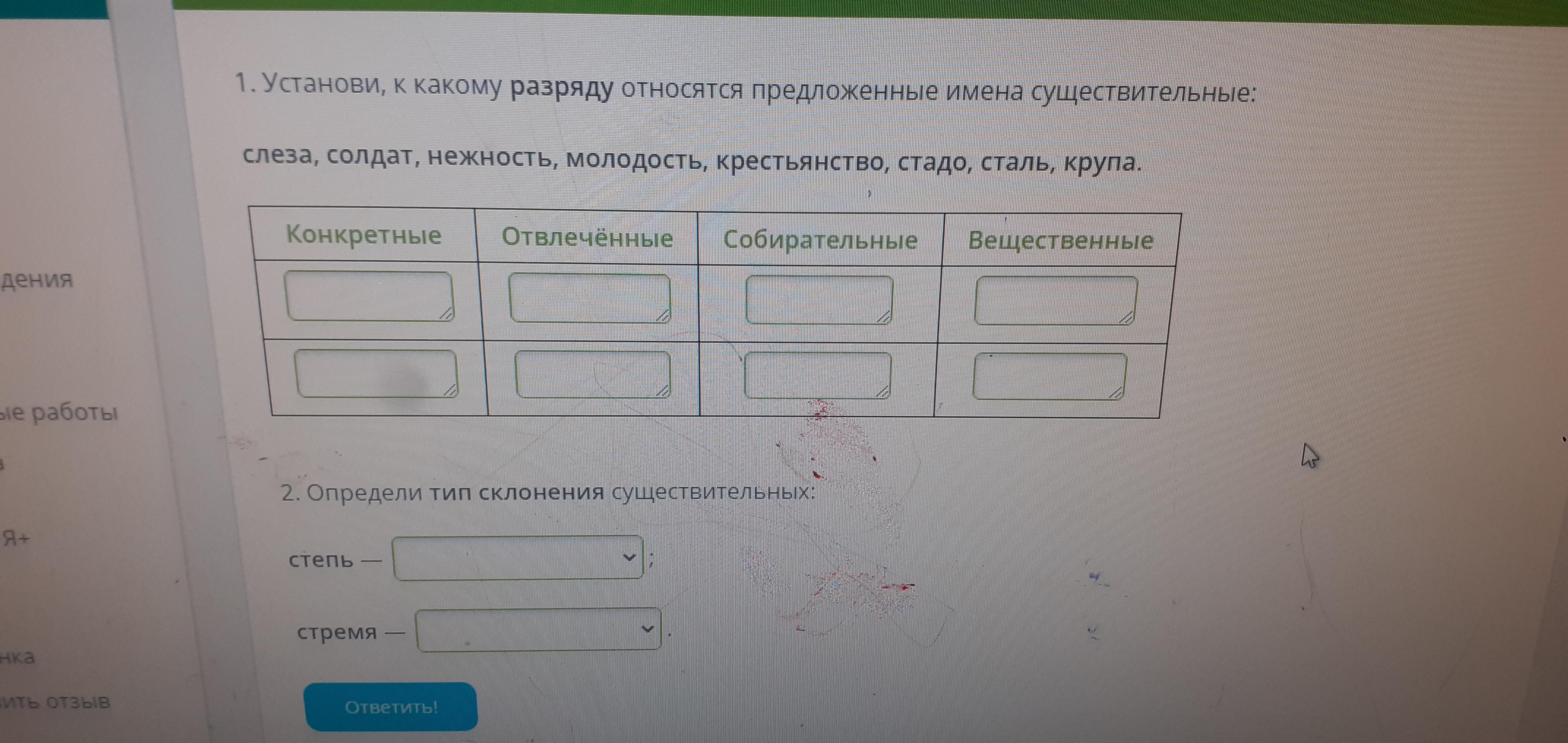 К отвлеченным относятся:нежность,молодость