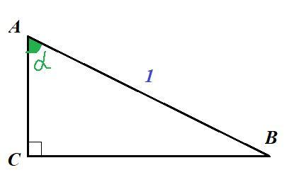 Дано: ΔABC, ∠C=90°, AB=1, ∠А=α