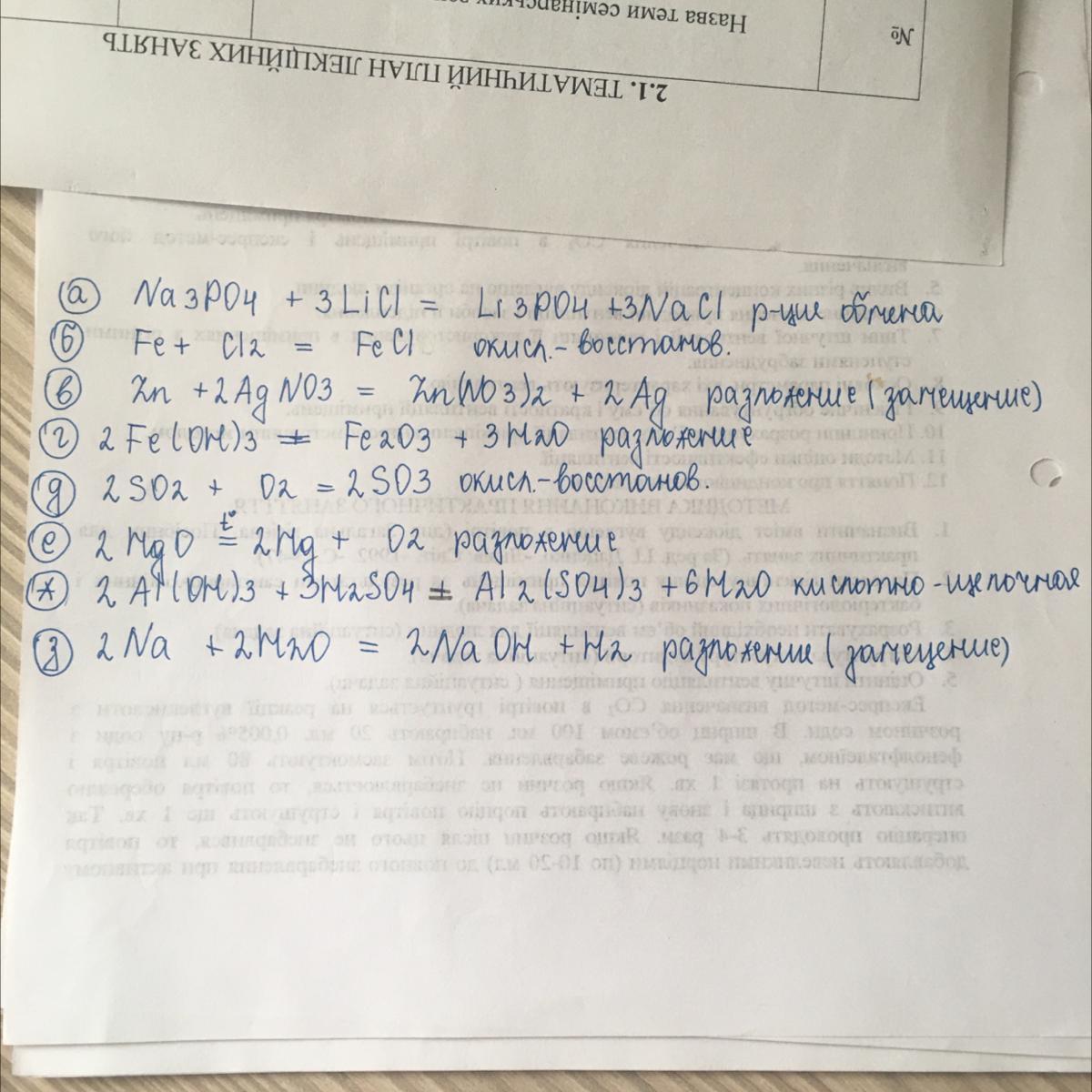11.Расставьте коэффициенты, определите тип каждой реакции: