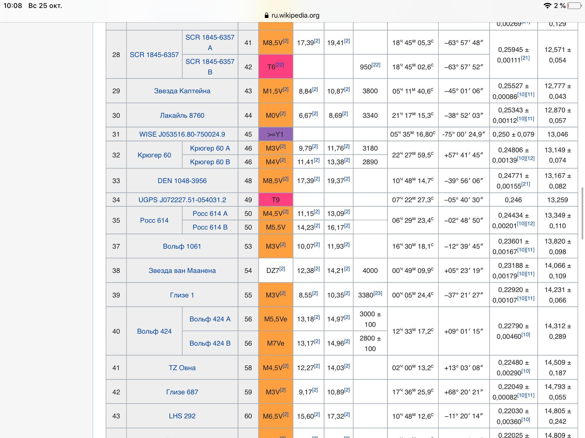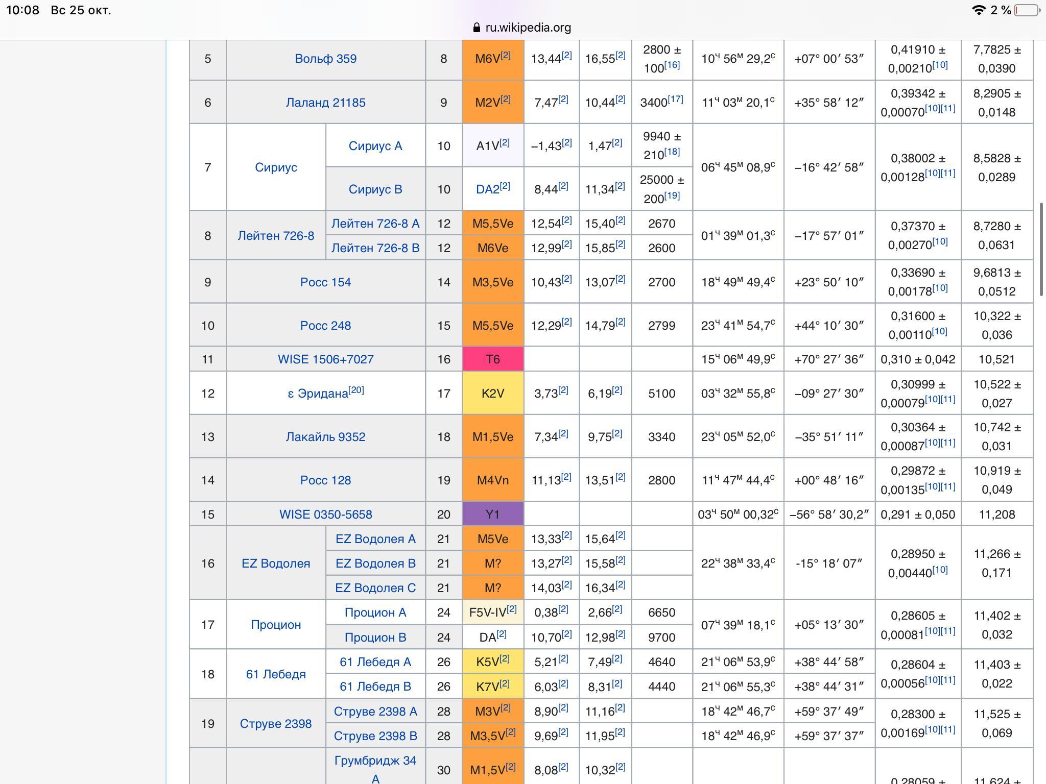 Включая Солнце, в настоящее время известны 57 звёздных систем, которые могут находиться в пределах этого расстояния. Эти системы содержат в общей сложности 64 звезды и 13 коричневых карликов.