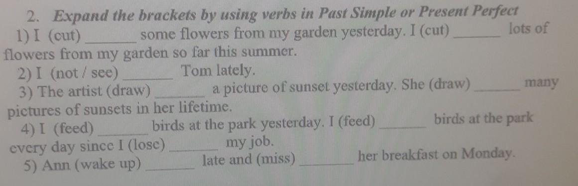 1) I (cut) ______ some flowers from my garden yesterday. I (cut) ______ lots of