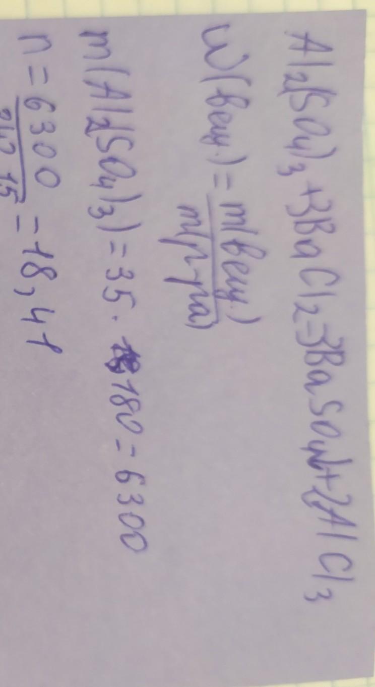9 класс Давайте по серьёзному химики!!!Найти массу осадка,который можно получить при взаимодействии 180г 35% раствора сульфата алюминия с хлоридом бария