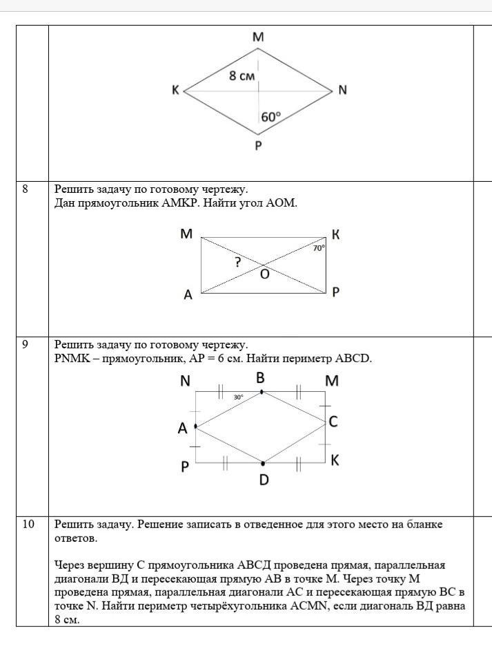 8. Диагонали прямоугольника равны и делятся точкой пересечения пополам ⇒ OK и OP равны