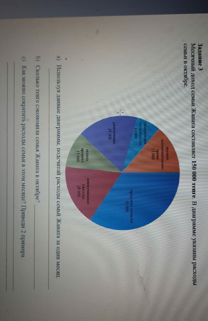 а) Используя данные диаграммы, подсчитай расходы семьй Жаната за один месяц.