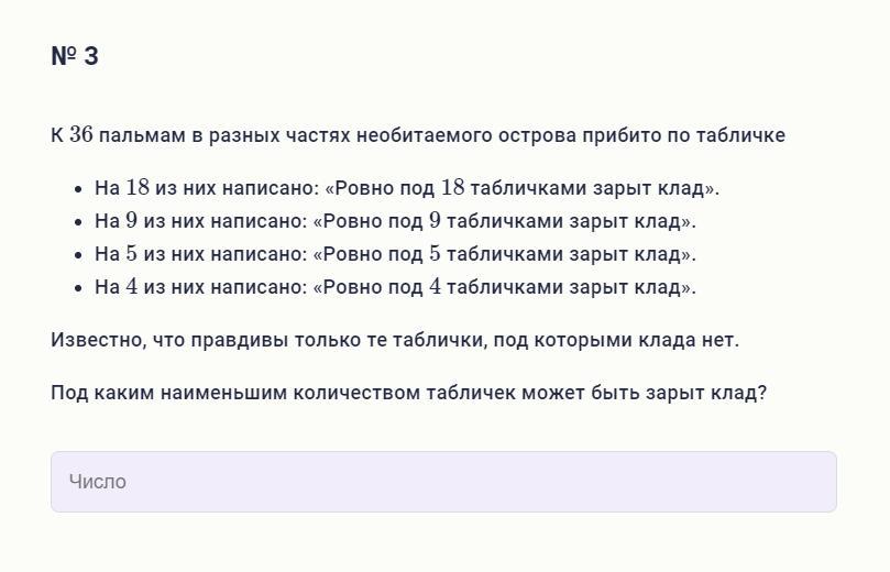 число будет найменшим если под каждой табличкой где написано 18, клада не будет. а под каждой табличкой где любое другое число, будет клад, чтоб они были неверными.