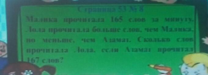 Если Лола прочитала больше Малики, но меньше Азамата, соответственно у нее 166 слов/минута