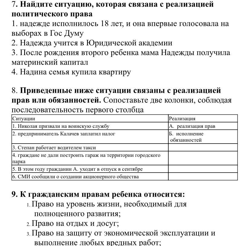 9. К гражданским правам ребёнка относится право на уровень жизни, необходимый для полноценного развития