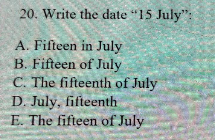 20. Write the date “15 July":