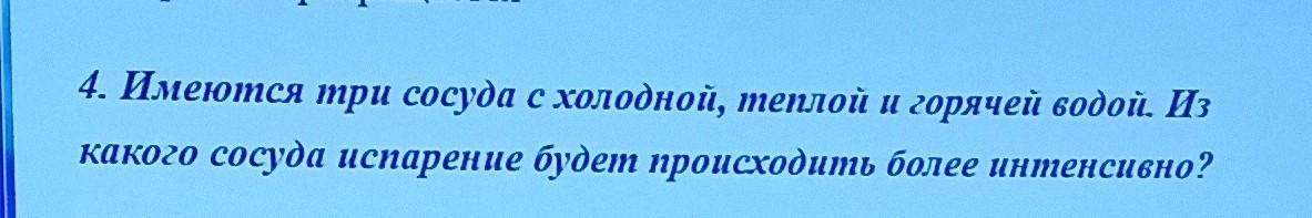 Ответ:Вроде испарение будет проходить более интенсивно с горячей водой