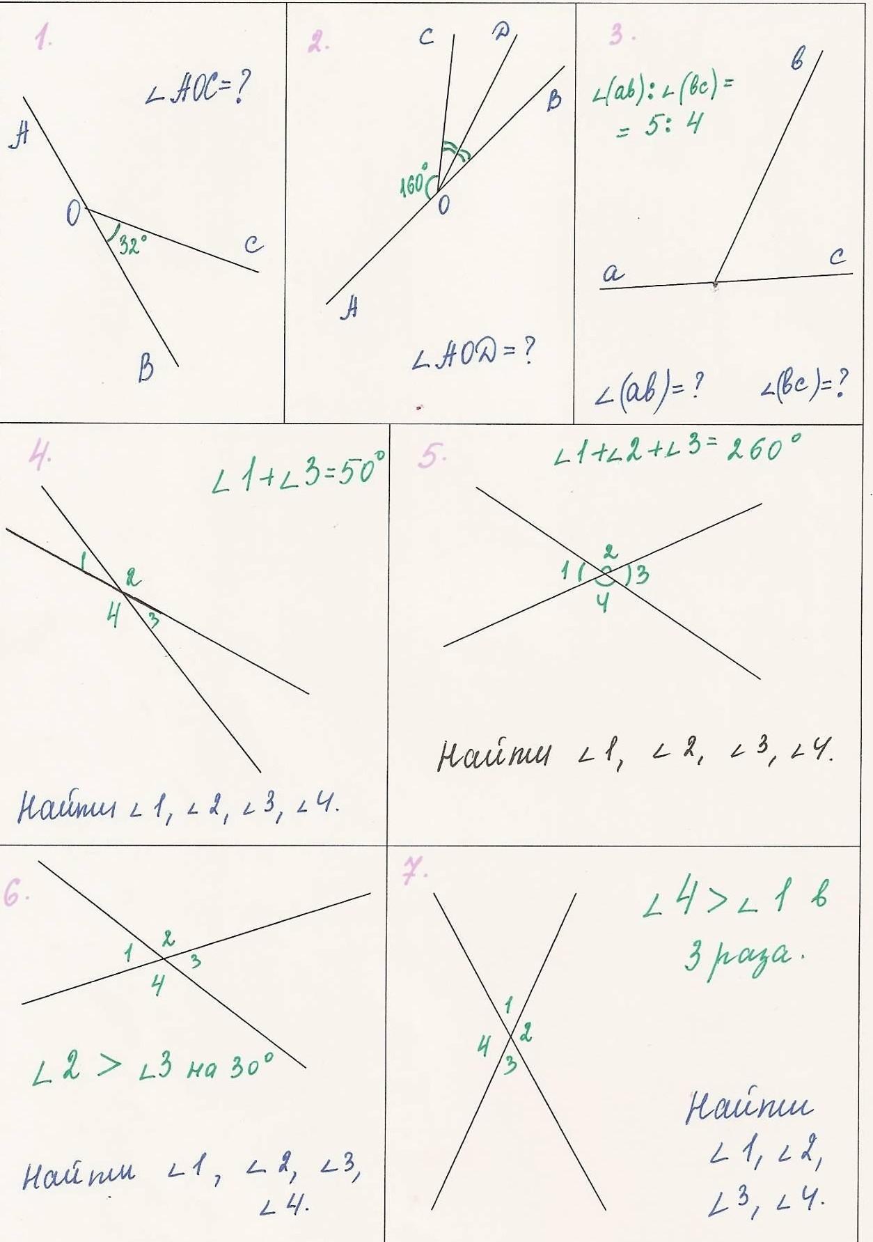Помогите с геометрией, 7 класс, плиз. Номера 1, 3, 5, 6. Тема: смежные и вертикальные углы если что.