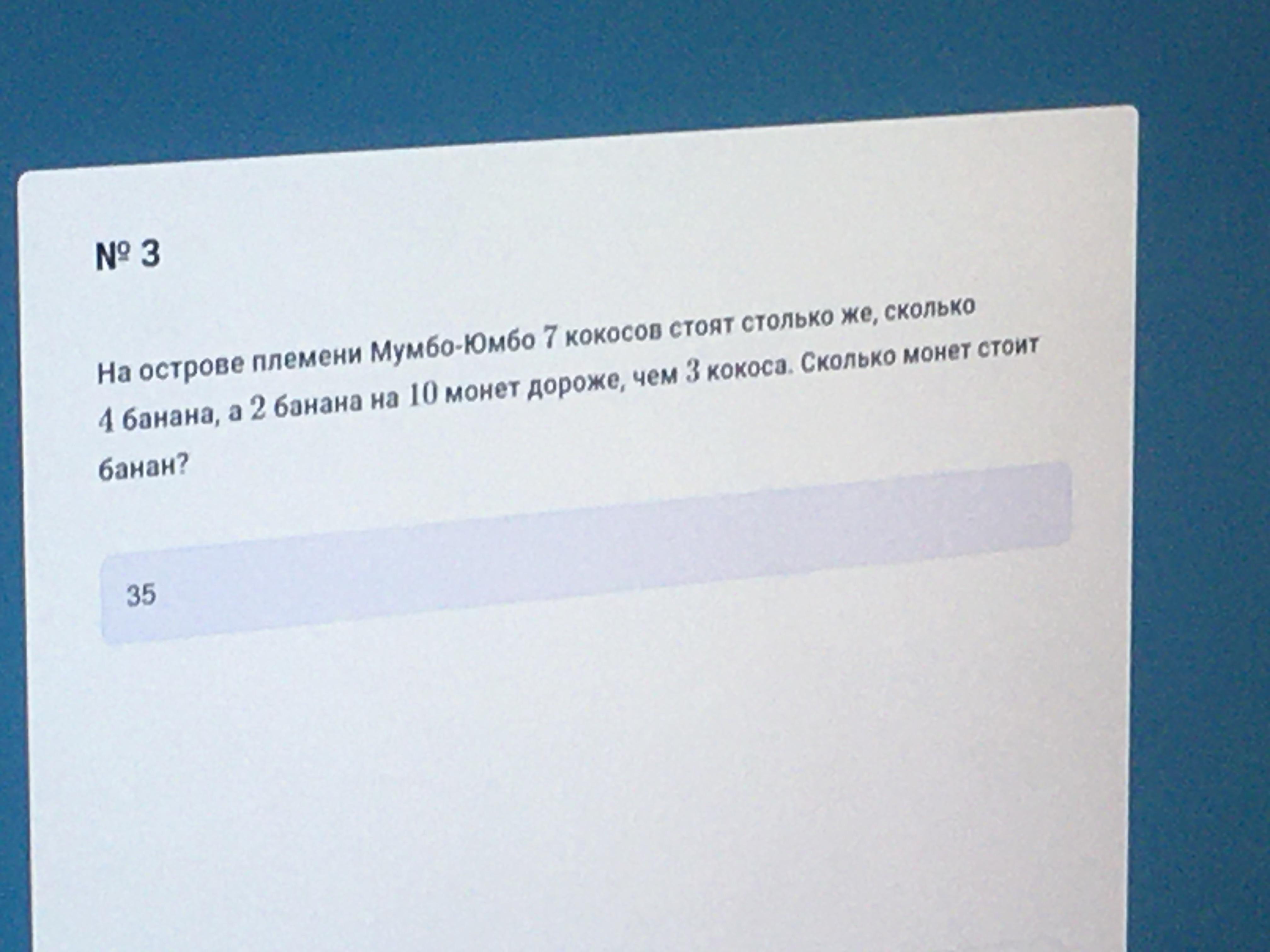 Банан стоит 35 монет, кокос стоит 20 монет