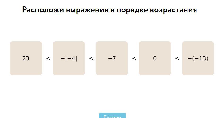 -7 < - 4 < 0 < 13 < 23, получаем: