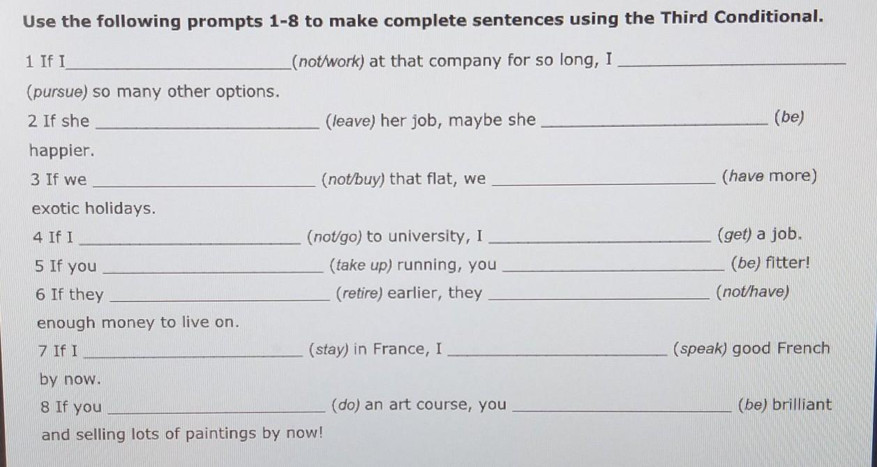 7. if I had stayed at france, I would have spoken good french by now.
