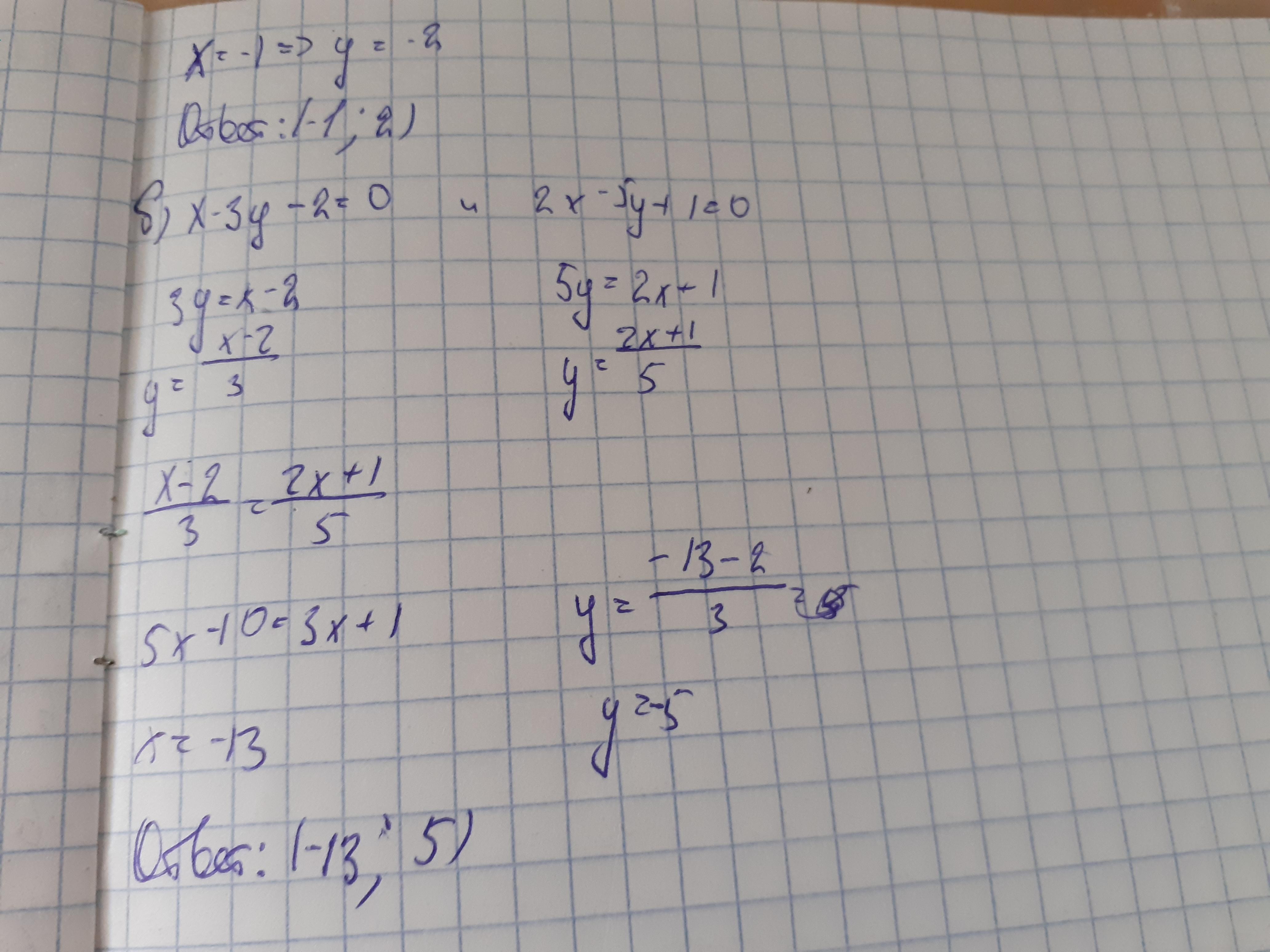 б) х - 3y + 2 - 0; 2x - 5у +1 = 0