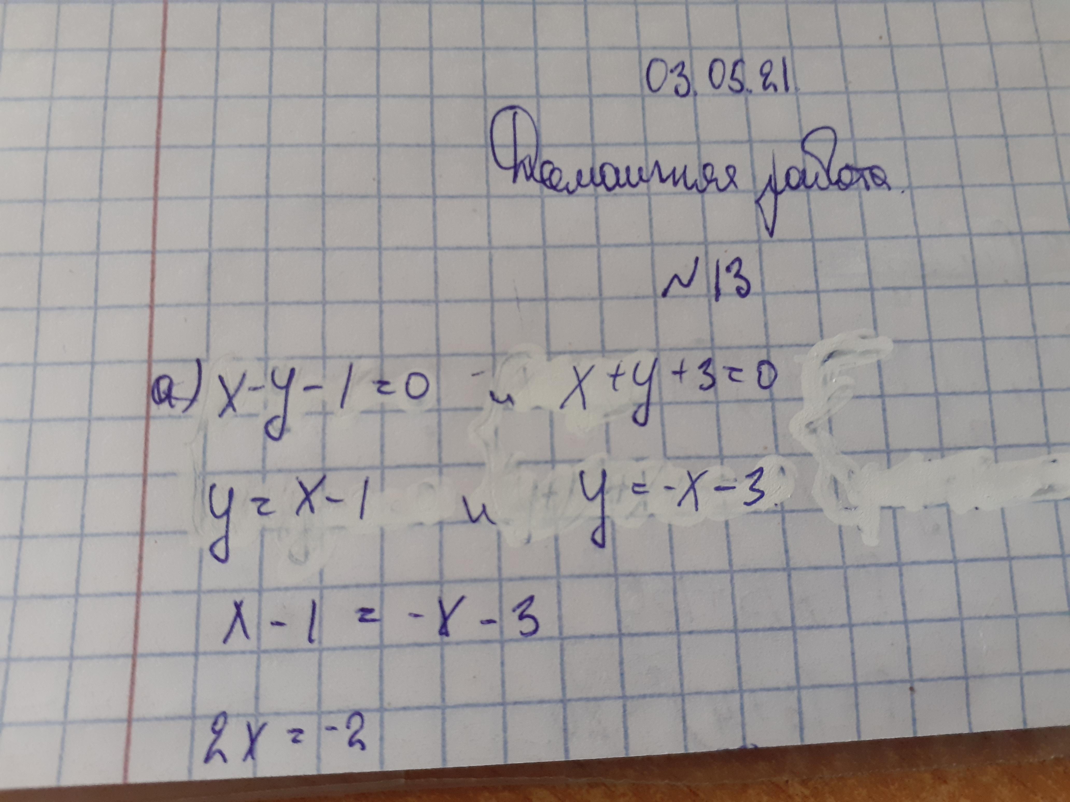 а) х - у - 1 - 0; x+y+ 3 = 0
