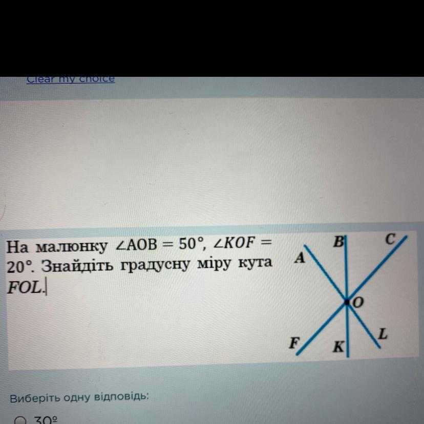 Значит FOL=50+20=70 градусов